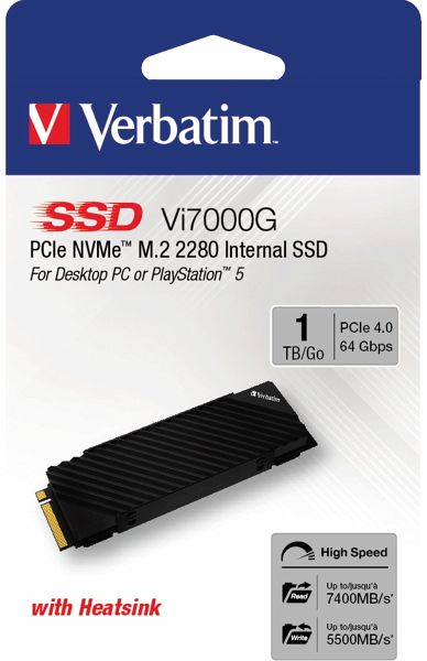 Profitieren Sie von der extrem hohen Geschwindigkeit und kompromisslosen Leistung der Verbatim Vi7000G M.2 PCIe NVMe SSD. Die Vi7000G wurde für den professionellen Einsatz und für Gamer entwickelt. Daher ist sie die ultimative Lösung für das Upgrade Ihres Gaming-Setups oder Ihrer Konsole. Da die Vi7000G mit der PlayStation 5 kompatibel ist, können PS5-Spiele direkt auf der SSD gespeichert und von der SSD aus gespielt werden.