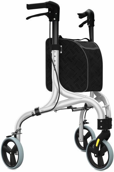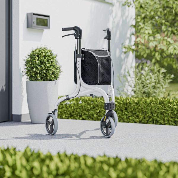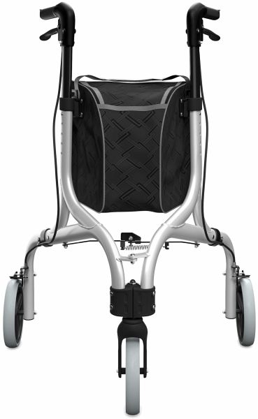 Die 3-rädrige Bauweise des Aluminium-Rollators sorgt für außergewöhnliche Wendigkeit und einfache Handhabung. Ideal für den Innen- und Außenbereich, widersteht er einer Belastung von bis zu 115 kg und bietet dank der abnehmbaren Tragetasche großzügigen Stauraum für Einkäufe oder persönliche Gegenstände.