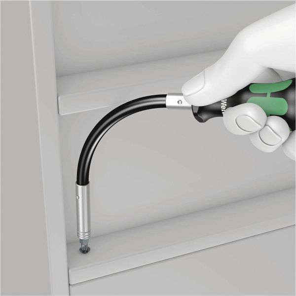 Schraubendreher mit biegsamem Schaft zum Erreichen schwer zugänglicher Stellen. Dank der Konstruktion mit besonders schlankem Bithalter können unterschiedliche Schraubprofile auch in sehr engen Arbeitsräumen betätigt werden. Mehrkomponentiger Kraftform Griff für hohe Arbeitsgeschwindigkeiten und besonders ergonomisches Verschrauben. Mit Sechskantabrollschutz gegen Wegrollen.