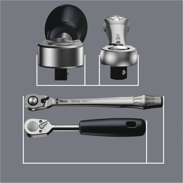- 1x 1/4" x 141 mm Zyklop-Metal-Knarre mit Umschalthebel mit 1/4"-Antrieb (8004 A)