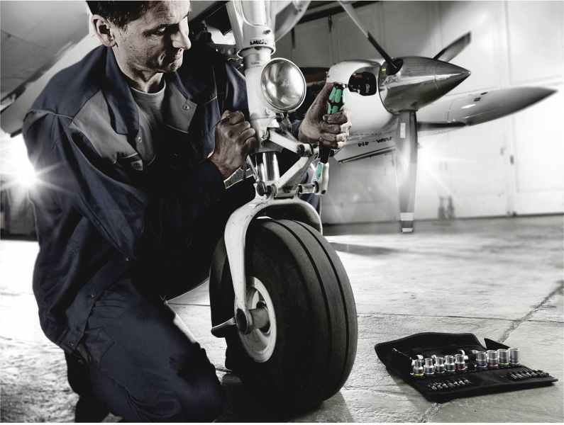 - Mit frei schwenkbarem Knarrenkopf, Druckknopfauslösung und Links- /Rechtsumschaltung