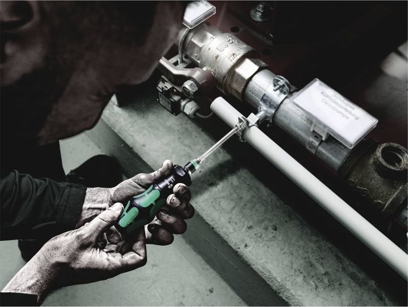 Viele Anwender wünschen sich, Schraubvorgänge ohne Kompromisse schneller durchführen zu können. Mit einem Schraubendreher, der präzise ist, der auch das kraftvolle Endverschrauben ermöglicht und der außerdem viel schneller ist als ein herkömmlicher Schraubendreher. Ein zuschaltbares Planetengetriebe ist die Lösung: Im Griff des Schraubendrehers integriert erhöht es die Arbeitsgeschwindigkeit deutlich. Der Kraftform Turbo beschleunigt das Schrauben auf rein mechanische Weise. Die Turbofunktion kann per Knopfdruck wahlweise zu- oder abgeschaltet werden. Die Abschaltung empfiehlt sich zur Feinjustierung und dem endgültigen Anziehen oder Lösen einer Schraube mit hohem Drehmoment. Die robuste Ausführung aus Stahl ist wartungsfrei und sorgt für ein langes Produktleben. Durch den Rapidaptor Bithalter kann der Kraftform Turbo mit allen herkömmlichen 1/4"-Sechskant-Bits für die verschiedensten Schraubprofile eingesetzt werden. Die Bits können aufgrund der Rapidaptor-Funktion direkt eingesetzt und durch Nach-vorne-Schieben der Hülse einfach entnommen werden - alles auch mit nur einer Hand.