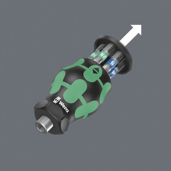 - Kurze kompakte Stubby-Form für Arbeiten in engen Bauräumen mit 6 Bits im integrierten Magazin