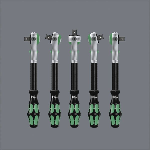 Ratschen und Schrauben im Kraftform Kompakt Format. Inklusive Zyklop-Knarre: Unglaublich hohe Schraubgeschwindigkeit. Vereinigt 5 Knarrentypen in einer Knarre. Schwungmassenkonstruktion und griffige Schnelldrehhülse für hohe Arbeitsgeschwindigkeit. Frei schwenkbarer Knarrenkopf; definierte Stellung bei 0°, 90° nach links und rechts sowie 15° von 90° nach innen; in 0°-Stellung einsetzbar wie ein konventioneller Schraubendreher. Einfache Druckknopfauslösung; Links- /Rechtsumschaltung, feinverzahnt, kleiner Rückholwinkel von 5°. Mehrkomponentiger Kraftform-Griff für ermüdungsarmes Arbeiten. 26-teilig in Falttasche zur Befestigung am Gürtel.1 Zyklop-Knarre mit 1/4"-Antrieb, 7 Zyklop-Nüsse (metrisch), 1 Zyklop-Verlängerung (lang) mit Schnelldrehhülse, 1 Verbindungsteil, 16 Bits in 50 mm Länge.