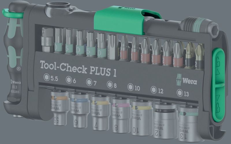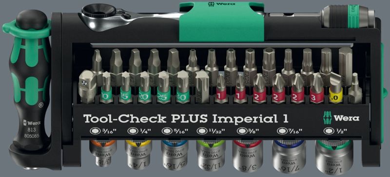 Das ist das Wera Tool-Check PLUS Imperial 1, ein extrem kompaktes 39-teiliges Werkzeugset, das für Hand- und Maschinenbetrieb konzipiert ist. Es eignet sich besonders für Schraubarbeiten in engen Räumen und unterwegs.