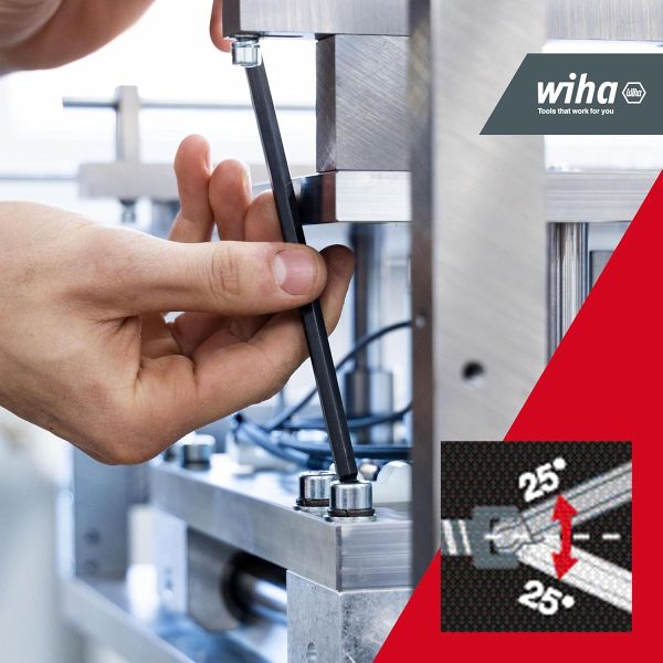 - Der Kugelkopf ermöglicht das Verschrauben unter einem Winkel von bis zu 25°