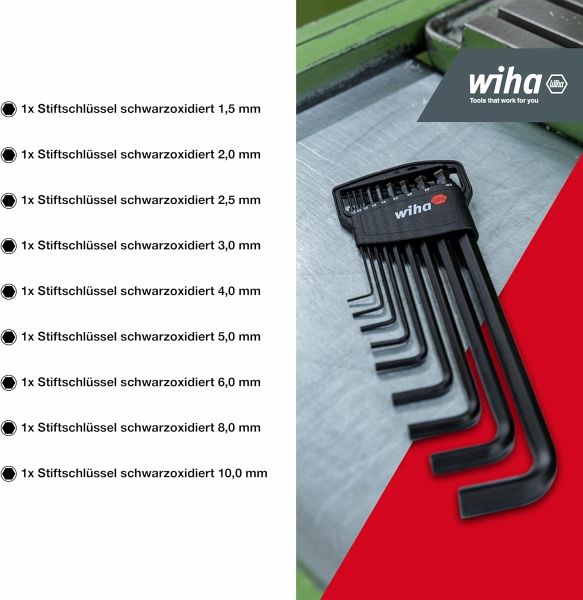 - 1x Stiftschlüssel Sechskant-Kugelkopf schwarzoxidiert 10,0 mm