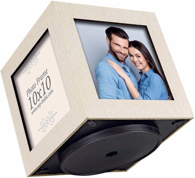 Holzfotowürfel, der sich drehen lässt | Auf der Oberseite des Würfels ist ein Baum zu sehen | Für Bilder mit den Maßen 10 x 10 cm (4x)