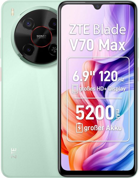 Das ZTE Blade V70 Max in der stilvollen Farbe Lake Green bietet dir ein elegantes Design, das sich durch seinen modernen und frischen Look auszeichnet. Ausgestattet mit dem leistungsstarken Unisoc T606 Prozessor und einer 64 MP Triple-Kamera, kannst du gestochen scharfe Fotos und Videos aufnehmen und eine reibungslose Performance genießen. Der großzügige 6,67-Zoll Full-HD+ Display sorgt für ein beeindruckendes visuelles Erlebnis, während der 5000 mAh Akku lange Laufzeiten ermöglicht. Perfekt für Nutzer, die ein zuverlässiges Smartphone mit beeindruckendem Design und leistungsstarken Funktionen suchen.