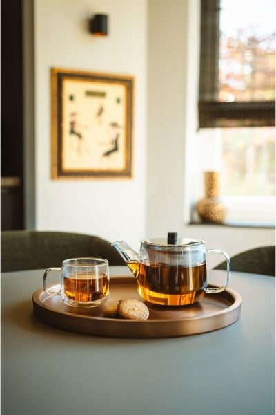Dieses Set besteht aus zwei Teegläsern mit doppelwandigem Design, das dafür sorgt, dass Ihre Getränke länger warm bleiben. Jedes Glas hat ein Fassungsvermögen von 290 ml und ist aus hitzebeständigem Borosilikatglas gefertigt.