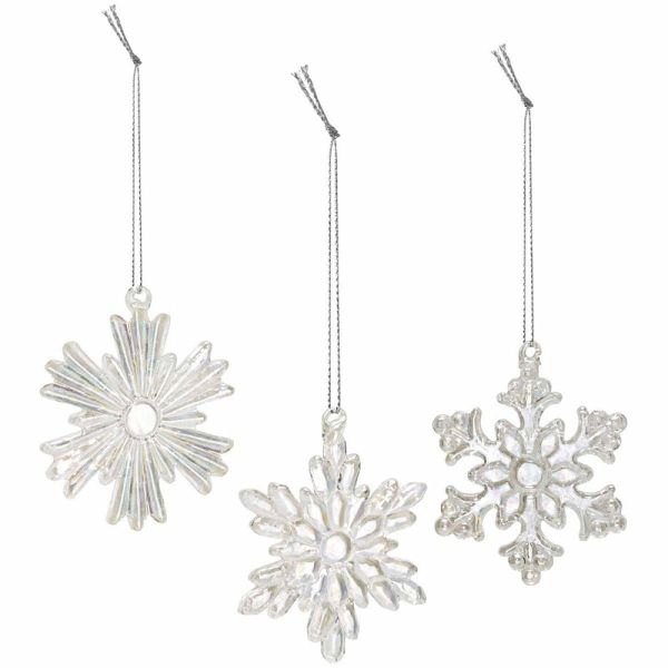Dekorative Schneeflocken-Anhänger aus GlasSchmücken Sie Ihr Zuhause in der Advents- und Weihnachtszeit mit diesen hinreißenden Schneeflocken als Glas-Anhängern. Wie auch jede Schneeflocke eine einzigartige Kristallstruktur bildet und keine der anderen gleicht, so weisen auch diese drei Anhänger eine jeweils unterschiedliche Form auf. Damit sind sie nicht nur eine zauberhafte Zierde an Christbäumen oder Türkränzen, sondern kommen auch wundervoll als Fensterdeko zur Geltung, wenn einfallendes Sonnenlicht durch das Glas mit Perlmutt-Schimmer hindurchscheint. Oder Sie lassen diese drei Schneeflocken in den Abendstunden hell erstrahlen, wenn sich Kerzenschein und Lichterglanz in ihrer gläsernen Oberfläche spiegeln.- drei unterschiedliche Schneeflocken-Anhänger aus Glas- zauberhafter Blickfang an Christbaum, Türkränzen oder Tannenzweigen- mit fluoreszierendem Perlmutt-Schimmer