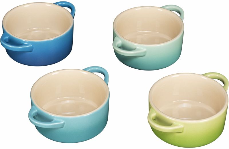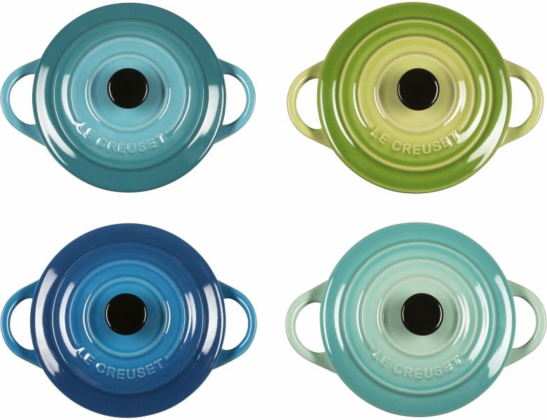 Set mit vier klassischen Mini-Cocottes aus hochwertigem Steinzeug von Le Creuset. Eignet sich für die Reinigung in der Spülmaschine, und kann im Backofen, der Mikrowelle und im Tiefkühlfach verwendet werden.