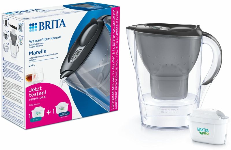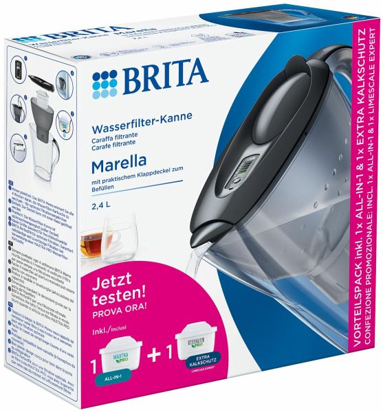 BRITA Wasserfilter Marella Graphit - inkl. 1x All-in-1 & 1x Extra Kalk