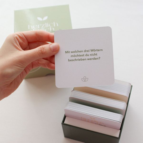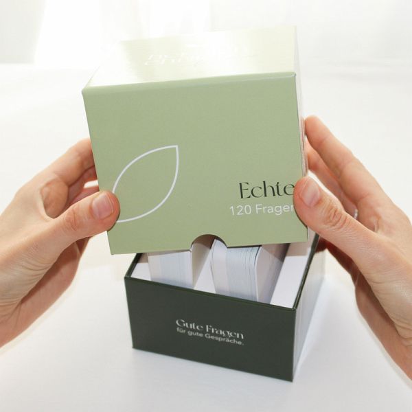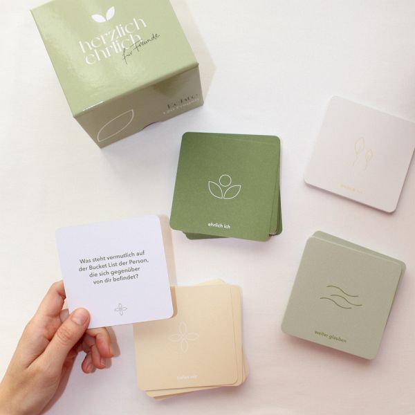 Die Fragebox "Echte Verbundenheit - herzlich ehrlich für Freunde" ist eine liebevoll, ansprechend schön gestaltete Box mit 120 Fragen für dich und deine Freunde, oder Menschen, die du gerne besser kennenlernen willst.