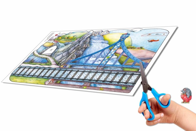 An einem Bahnhof, über die Brücke, durch den Berg schnauft die Bimmelbahn und zieht ihre Wagons hinter sich her. Eine Kulisse aus Papier für kleine Eisenbahnfreunde.Neben der mitgelieferten Lok und den Wagons kann die Papierkulisse mit bereits vorhandenen Teilen einer Holzeisenbahn ergänzt werden.Schnippeln macht Kindern großen Spaß und fördert die wichtige Feinmotorik.Dreidimensionales Basteln regt das räumliche Denken an.Basteln in Gemeinschaft unterstützt die Teamfähigkeit, in der Betreuung im Kindergarten oder Schule, zum Kindergeburtstag, auf Besuch bei Oma & Opa oder unterwegs im Urlaub mit den Eltern.Seit über 30 Jahren ein Bastelspaß für die ganze Familie.Für Kinder ab 5 Jahren geeignet mit Hilfe von Erwachsenen. Kreatives Papierspielzeug - bespielbare Landschaft mit Bahnhof, Brücke, Bergen und der Bimmelbahn aus robustem PapierDie Papierkulisse ist passend zu den handelsüblichen Holzeisenbahnen und kann beliebig ergänzt werden.8 Seiten liebevoll und detailreich illustriert vom renommier