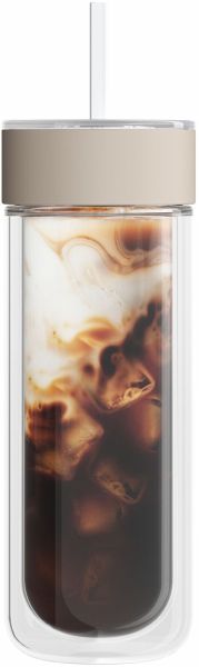 Genieße deine gekühlten Getränke stilvoll und ohne Kompromisse. Der doppelwandige Glasbecher hält deine Eiskaffees und Tees angenehm kühl, während die Außenseite trocken bleibt. Durch die klare Glasoptik kannst du deine Kreationen jederzeit bewundern.