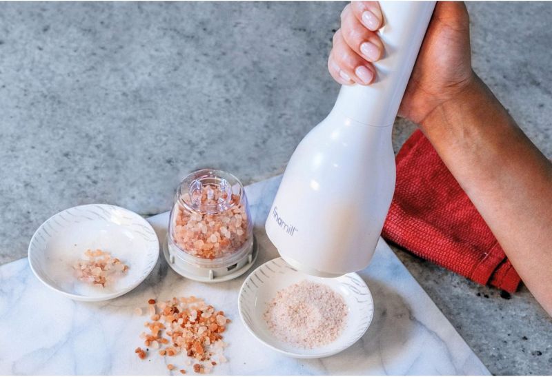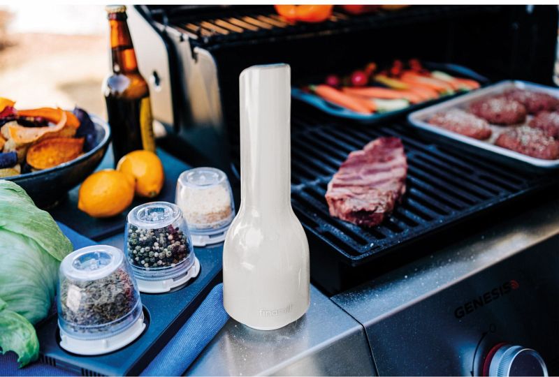 Füllen Sie einfach einen Mahlbehälter mit Ihrem Lieblingsgewürz und befestigen Sie ihn an der FinaMill. Halten Sie die FinaMill über Ihr Essen, drücken Sie den Knopf, und ein LED-Licht beleuchtet einen Schauer frisch gemahlener Gewürze. Sie können die FinaMill mit nur einer Hand bedienen - perfekt für Multitasking-Köche und Menschen mit eingeschränkter Mobilität. Die FinaMill-Mahlkapseln dienen gleichzeitig als Aufbewahrungsort für alle Gewürze und können mit wenigen Klicks ausgetauscht werden. Sogar der Mahlgrad ist einstellbar: Mahlen Sie getrocknete Chilischoten fein oder grob gemahlenen schwarzen Pfeffer und Meersalz.