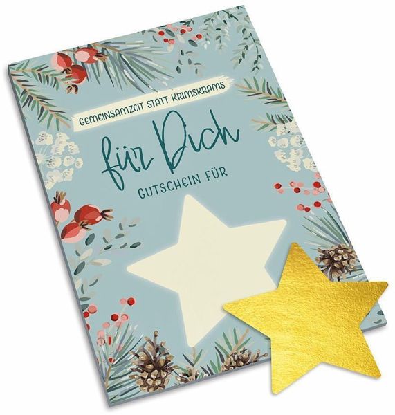 Gemeinsamzeit statt Krimskrams - Originelle Gutschein-Postkarten mit einem Feld für eigene Eintragungen, gedruckt auf extra-starkem Karton. Sie werden mit dem passenden selbstklebenden Rubbeletikett geliefert. Einfach die Gutschein-Idee in das Feld schreiben, Etikett aufkleben und schenken. Der oder die Beschenkte kann dann das Feld freirubbeln und das Geschenk entdecken.