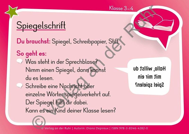 Unterrichtsmaterial (Karteikarten) für Lehrer und Lehrerinnen an Grundschulen, Fächer: Deutsch, Klasse 3-4 +++ "Ich bin fertig! Was soll ich machen?" - Sicher kennen Sie als Lehrkraft diese Frage, die Kinder stellen, wenn sie in der Deutschstunde einfach mehr "Futter" brauchen. Mit dieser Differenzierungskartei versorgen Sie Ihre schnellen Schülerinnen und Schüler für 5-10 Minuten mit motivierenden Angeboten. Das Mandala hat ausgesorgt! Die Karteikarten in DIN A6 lassen sich einfach handhaben und sind ideal für die stille Einzelarbeit. Mithilfe der Logos auf den Karten zu den Themen "Leseverständnis und Wortschatz", "Rechtschreibung", "Texte erstellen", "Grammatik" und "Knobeleien" können Sie den Kindern zielgenau Zusatzübungen bereitstellen. Die Karten sind zusätzlich in die Klassenstufen 3 und 4 eingeteilt, sodass Ihre Schülerinnen und Schüler weder unter- noch überfordert werden. Die Ideensammlung umfasst 80 Karten, die den Kindern mit kreativen Impulsen helfen, wichtige Themen des Deutschunterrichts spaßvoll zu vertiefen. Sobald der Leselernprozess abgeschlossen ist, können sich die Schülerinnen und Schüler selbstständig eine Aufgabe nehmen und sie allein bearbeiten. Während die "Schnellen" also z. B. an einem Gegenteil-Silbenrätsel knobeln, können Sie sich um die Kinder kümmern, die eben noch nicht fertig sind.