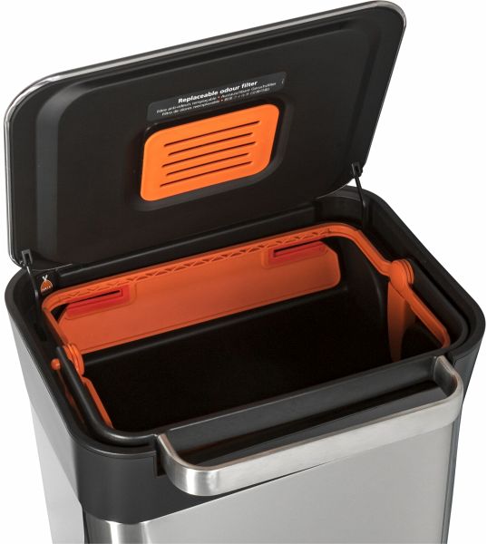 Dank der integrierten Geruchskontrolle mit austauschbaren Aktivkohlefiltern werden unangenehme Gerüche reduziert. Der Abfalleimer funktioniert perfekt mit maßgeschneiderten IW4-Abfallbeuteln, kann aber auch mit Standardbeuteln verwendet werden.