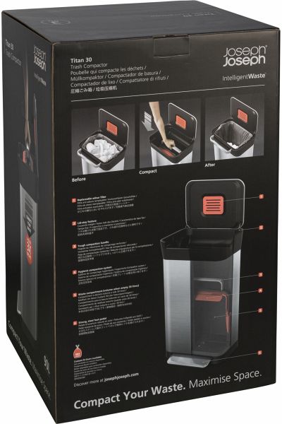 Joseph Joseph Titan Edelstahl 30 L Abfalleimer inkl. Abfallpresse