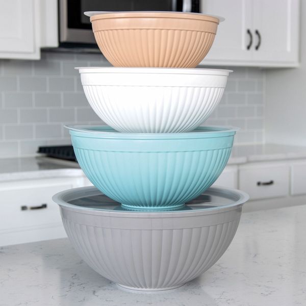Mit diesem 8-teiligen Set von Nordic Ware bist du bestens für jedes Küchenprojekt ausgestattet. Egal ob Mixen, Aufbewahren oder Servieren - die stabilen Schalen in modernen Farbtönen sind der perfekte Begleiter für deine täglichen Küchenaufgaben. Jeder Deckel verschließt die Schalen sicher, sodass deine Lebensmittel frisch bleiben.