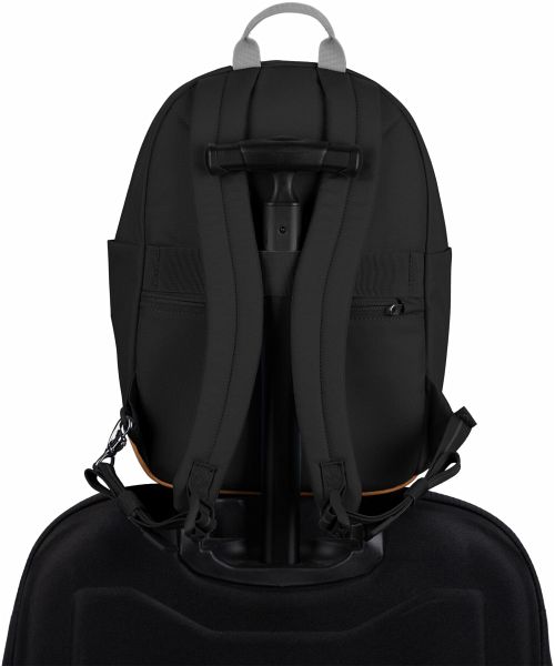 - Rückenschlaufe zum Aufsetzen auf einen Rollkoffer