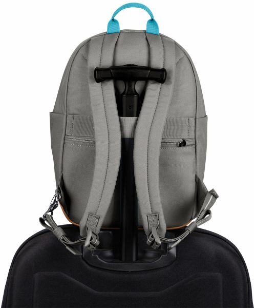 - Rückenschlaufe zum Aufsetzen auf einen Rollkoffer