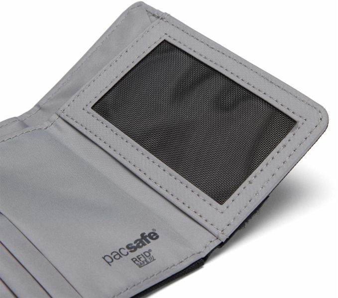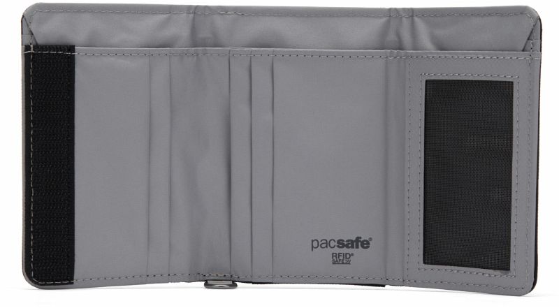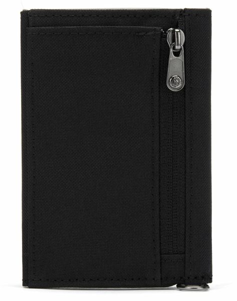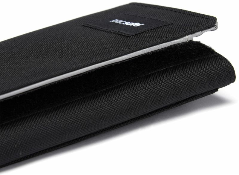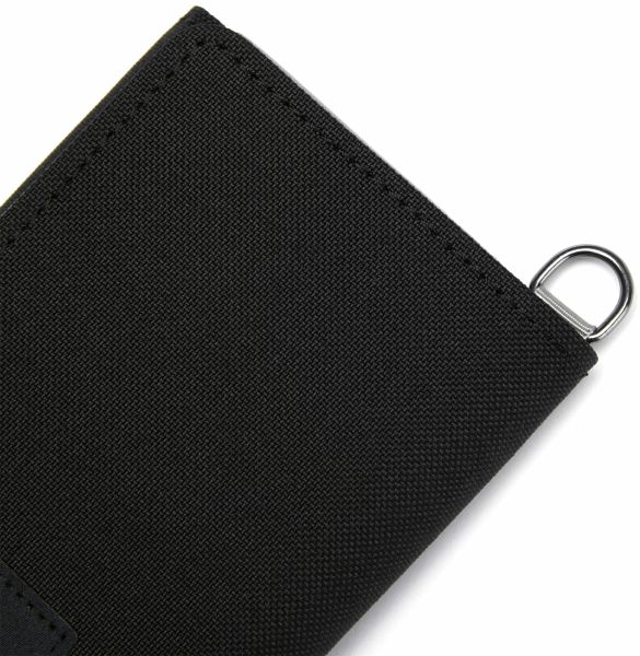 Das schlanke Design sorgt dafür, dass du das Wallet immer griffbereit und unauffällig tragen kannst. Durch die wasserabweisende Außenhülle bleiben deine Karten und Münzen auch bei feuchtem Wetter sicher und trocken. Ein Befestigungspunkt ermöglicht es dir, das Wallet in eine Pacsafe Tasche einzuklinken.
