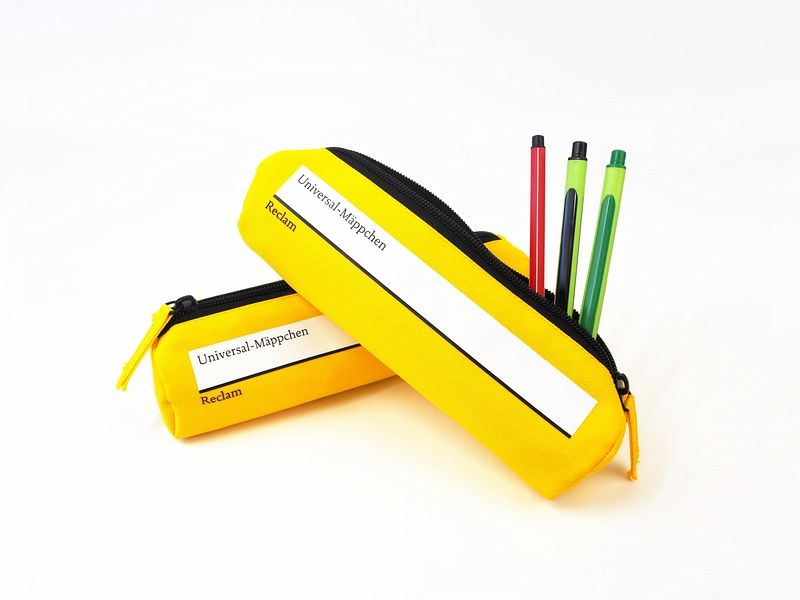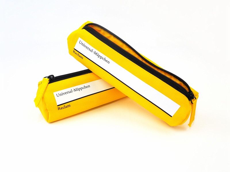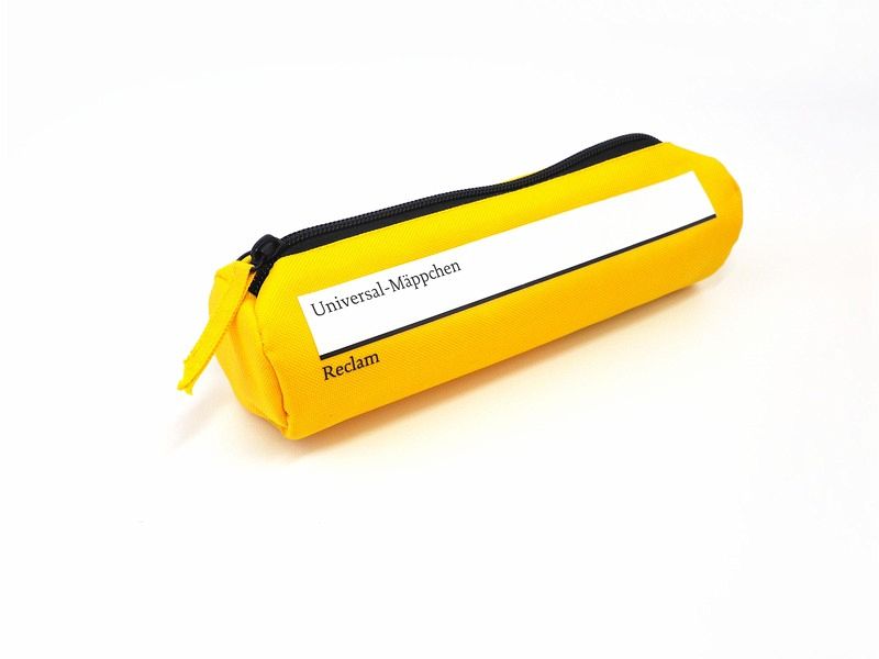Ein Must-Have für alle Literaturfans: das handliche Universal-Mäppchen im Design der gelben Reclam-Hefte, die jeder von uns aus der Schulzeit kennt. Perfekt, um all sein kleines Hab und Gut stilvoll und mit einem Augenzwinkern zu verstauen, sei es im Unterricht, in der Vorlesung, im Büro oder in der Handtasche. Ein Klassiker, der nicht nur einen praktischen Nutzen hat, sondern zugleich ein Bekenntnis zur Liebe zur Literatur ist.