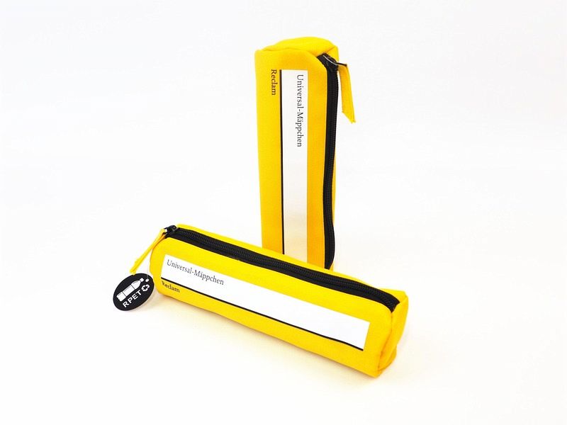 Klassisch gelb und trotzdem grün: Das Universal-Mäppchen wurde aus recycelten PET-Flaschen hergestellt Ein praktischer Begleiter im Alltag: für Zuhause, für das Büro oder für unterwegs Vielseitig einsetzbar: Im Universal-Mäppchen finden nicht nur Schreibutensilien, sondern auch Kosmetikartikel ihren Platz