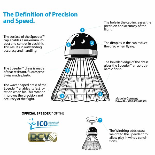 Der Speeder ist im Vergleich zu herkömmlichen Federbällen kleiner und schwerer. Vorteil: es kann auch über weite Entfernungen und bei Wind gespielt werden. Die Speeder MixTube bietet für jede Gelegenheit den passenden Ball: