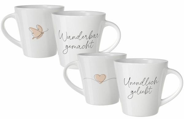 Dieses Tassen-Set ist eine schöne Liebeserklärung für den liebsten Menschen im Leben und auch eine besondere Geschenkidee zum Geburtstag, Valentinstag, Jahrestag, zur Verlobung oder Hochzeit.Mit Aufdruck: "Unendlich geliebt" und "Wunderbar gemacht"