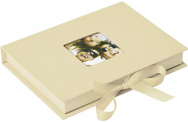Box Fun mit hochwertigem Papiereinband und quadratischem Bildausschnitt 6x6 cm im Deckel für ein persönliches Foto.