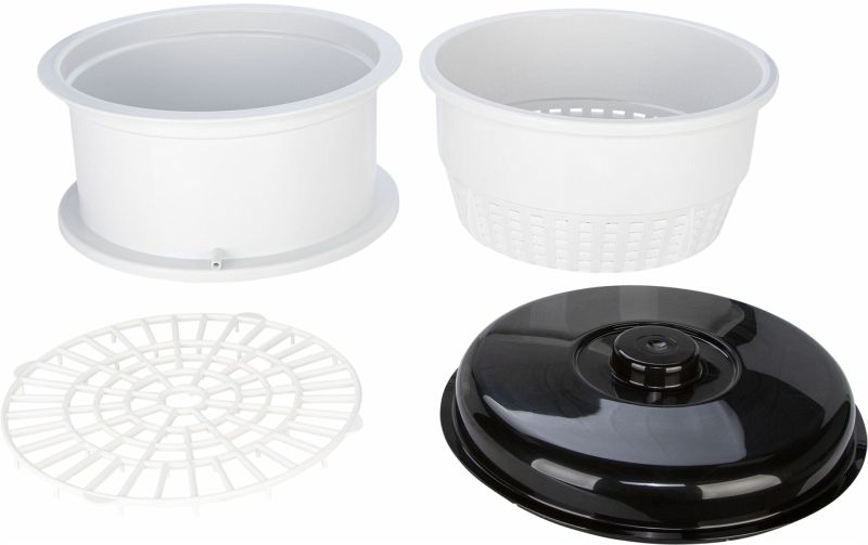 Will man aus einer reichen Obsternte Saft herstellen, bietet der Entsafter eine gute Ergänzung zum Einkochautomaten, auf den der Entsafter-Aufsatz aufgesetzt wird. Er besteht aus Aufsatz, Sieb und Deckel und bietet mit dem Auslaufschlauch eine praktische Hilfe beim Befüllen der Flaschen. Dieses Modell ist in Weiß mit schwarzem Deckel.