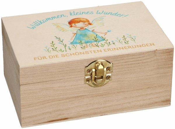 Diese liebevoll gestaltete Holzbox ist ein besonderer Ort für die wertvollsten Erinnerungen an die ersten Lebensmonate eines Kindes. Ob das kleine Geburtsarmband, die erste Haarlocke oder winzige Söckchen - hier finden all die kostbaren Kleinigkeiten einen geschützten Platz.Mit ihrer farbigen Gestaltung und der handlichen Größe von 15 x 7 x 10 cm ist die Box nicht nur praktisch, sondern auch ein wunderschönes Geschenk zur Geburt oder Taufe.